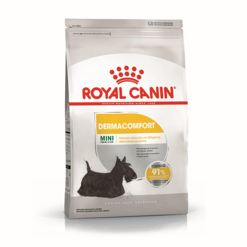 Royal Canin Mini Dermacomfort es un alimento Súper Premium para perros adultos y maduros de raza pequeña. Que sean propensos a la irritación cutánea y al prurito. A partir de los 10 meses de edad.